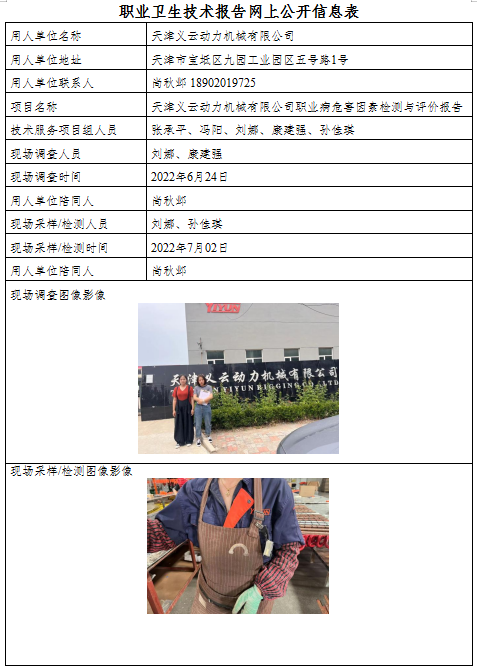 天津义云动力机械有限公司职业病危害因素检测与评价报告