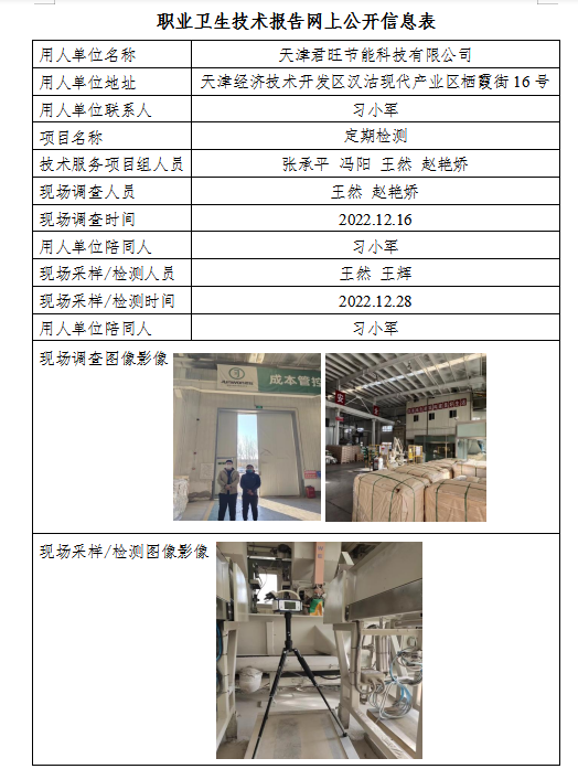 天津君旺节能科技有限公司职业病危害检测与评价
